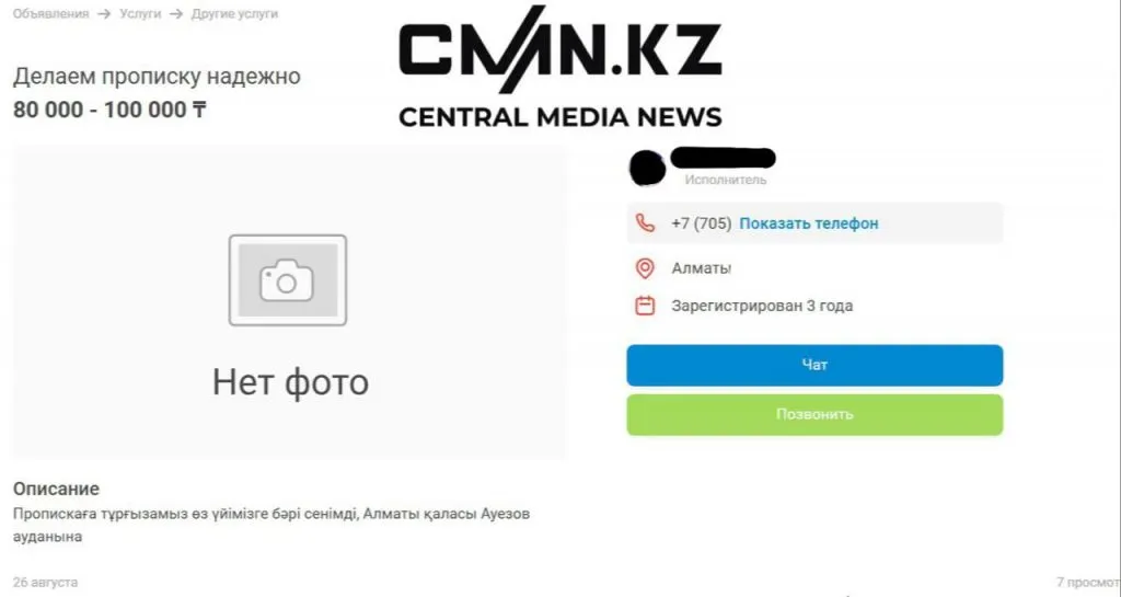 Цены в объявлениях начинаются от пяти тысяч тенге. При этом авторы публикаций предлагают за эту сумму как временную, так и постоянную регистрацию.
