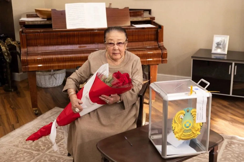 Оперная певица должна была голосовать на избирательном участке №559. Однако Бибигуль Тулегенова подала заявку на голосование на дому из-за плохого самочувствия.