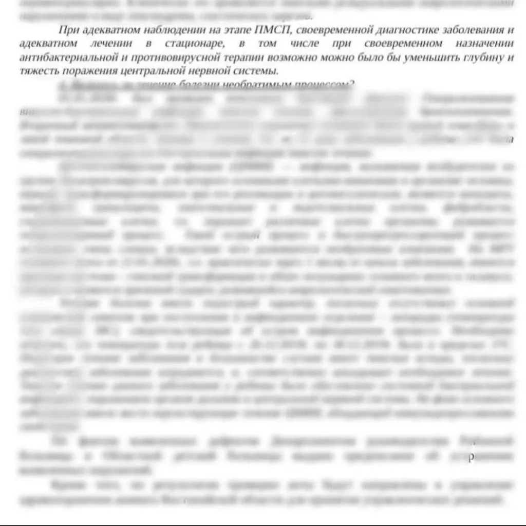 В заключении написали, что при своевременном лечении и вовремя поставленном диагнозе можно было уменьшить степень гибели головного мозга.