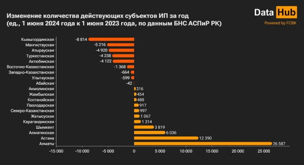 «Речь идёт обо всех областях, расположенных на западе и востоке Казахстана, двух – на юге (Кызылординская, Туркестанская) и одной – в центре (Улытауская). Суммарный показатель этих областей сократился на 30 тысяч единиц – до 608,6 тысяч единиц. Относительный спад составил 5%»,