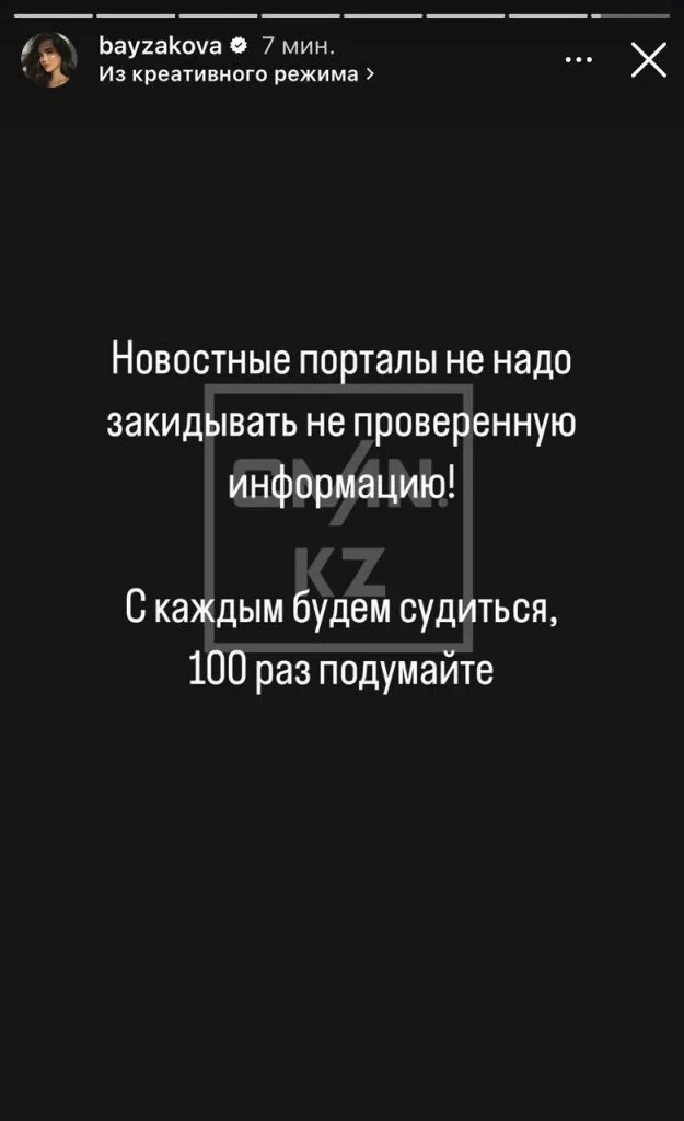 Позже Айжан Байзакова пригрозила судом новостным порталам за распространение ложной информации.