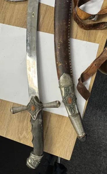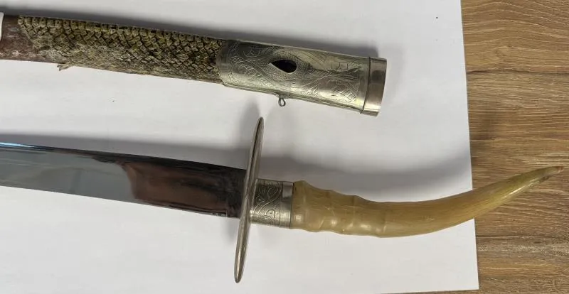 За 582 540 тенге ушла на торгах сабля с рукоятью из рога и ножнами из металла, которые обшиты кожей змеи.