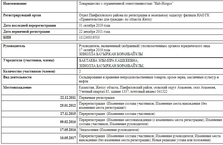 Полгода ушло на попытку договориться об изменениях в реализации проекта. В этот период у ТОО сменился состав участников. До 10 мая 2017 года владельцами Hab-Horgоs значились ТОО "БАЗИС-САМАЛ", Анара Есимова, Ардак Смайлов и Гүлсім Әбдікерова. Новыми учредителями стали Эльмира Бактаева и Бауыржан Зинолла.
