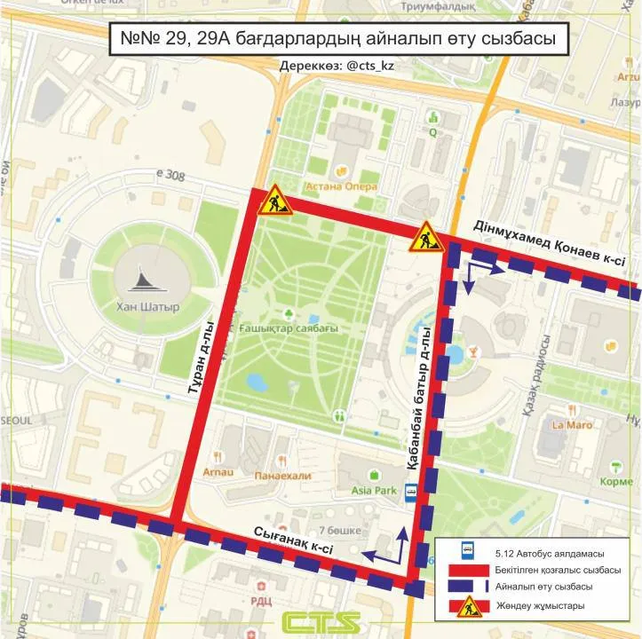 «В Астане с 19 февраля по 30 октября изменится схема движения маршрутов №№ 12, 29, 29А, 35, 305, 312, следующих по улице Динмухамеда Конаева», - сообщили в акимате Астаны.