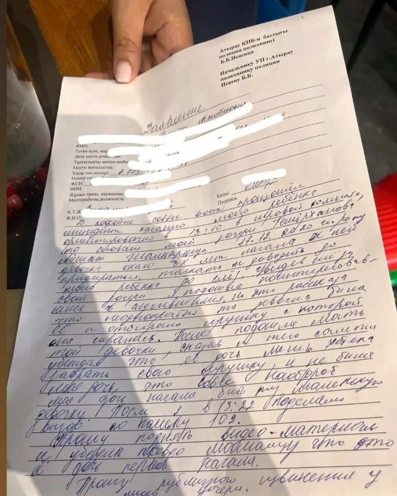 В Атырау мама пятилетней девочки всерьёз решила разобраться с обидчицей своей дочери — и отправилась не к психологу, не к воспитателю, а в полицию. Она написала заявление на трёхлетнюю девочку, сообщает CMN.KZ