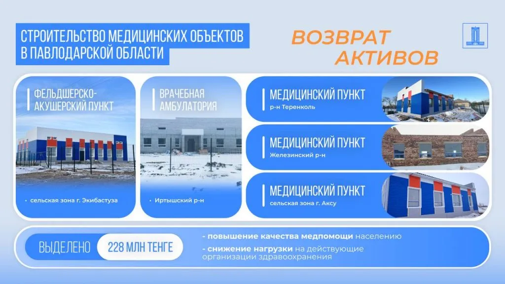 В сёлах Павлодарской области появятся новые медицинские пункты. На их строительство в регионе потратят 228 млн теге из возвращённых активов, передаёт CMN.KZ
