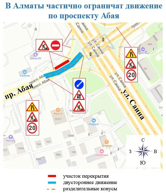По южной стороне проспекта Абая будет организовано движение в обе стороны.