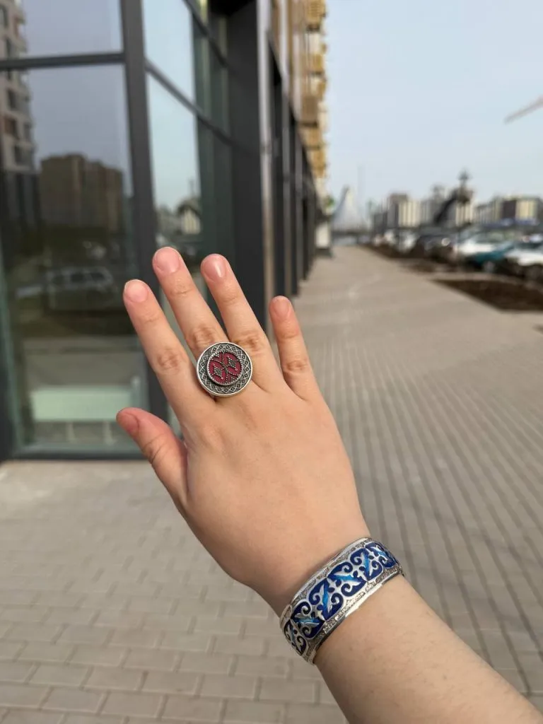 Казахстанки разрушают стереотип о том, что крупные национальные украшения носят только представители старшего поколения, и смело сочетают их с офисным стилем и кэжуал образами. Адия Абубакир из Астаны подчёркивает, что такие украшения всегда актуальны и могут подчеркнуть индивидуальность.