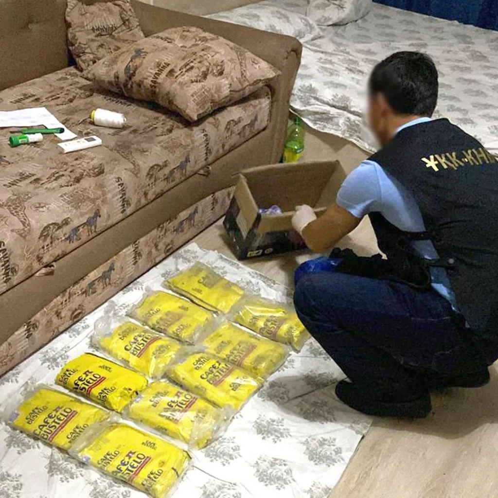 В КНБ рассказали, что 21 июня при сбыте 10 кг гашиша в Мангистауской области с поличным задержали 2 граждан Казахстана. В ходе обысков у них изъяли около 50 г опия, 4 000 долларов США и более 4 млн тенге.