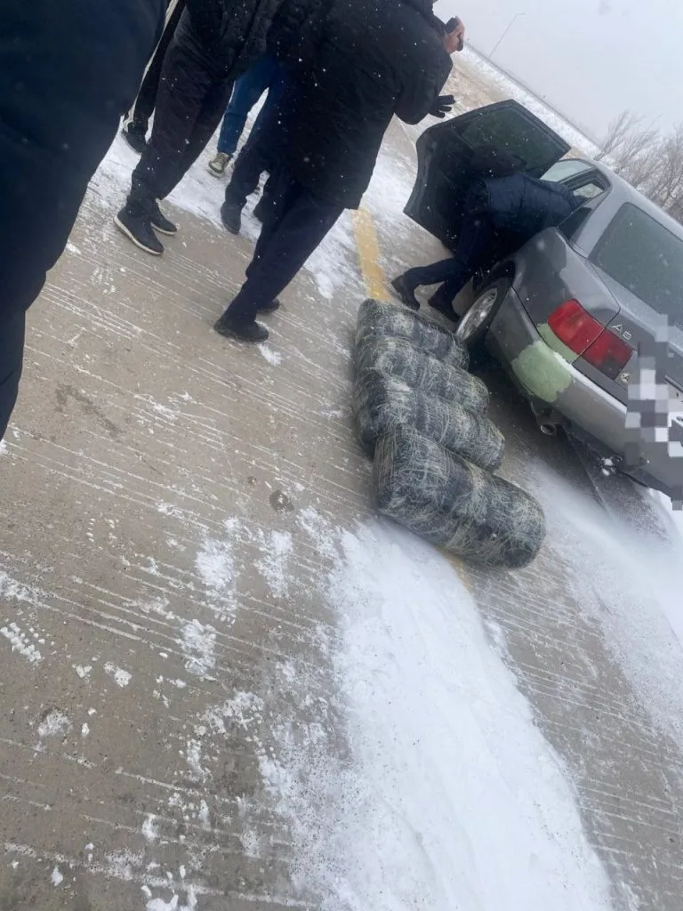 Наркокурьеров из Жамбылской области задержали на трассе «Караганда – Астана». Свой груз они везли на заднем сиденье и в багажнике машины.