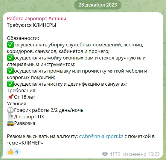 С приходом новой власти в столичную воздушную гавань там изменились некоторые порядки. Внезапно оказалось, что аэропорту срочно нужно новые клинеры, как раз под Новый год. Оказалось, что уборщицы просили выдать им спецодежду, купить пылесосы, а также выплатить новогоднюю премию. В самой воздушной гавани опровергали наличие конфликта, сообщив, что всё успели урегулировать. А если женщинам не нравятся условия труда, то они могут обратиться в транспортную прокуратуру. Тем более, что премии в гражданско-правовых договорах не предусмотрены.