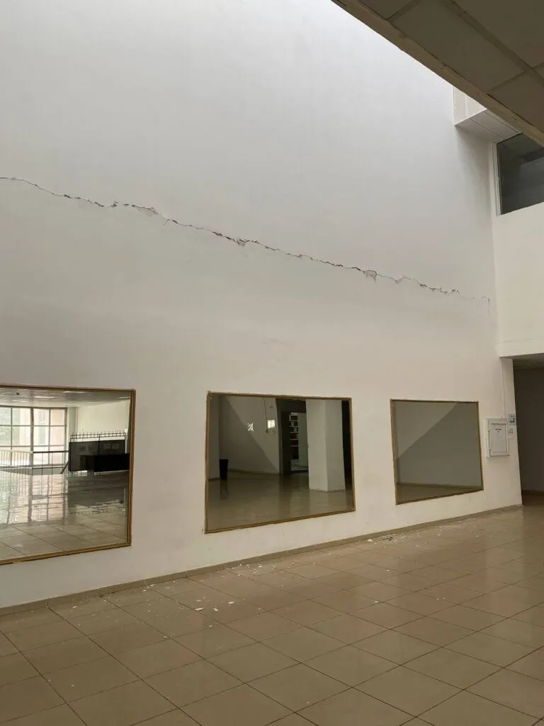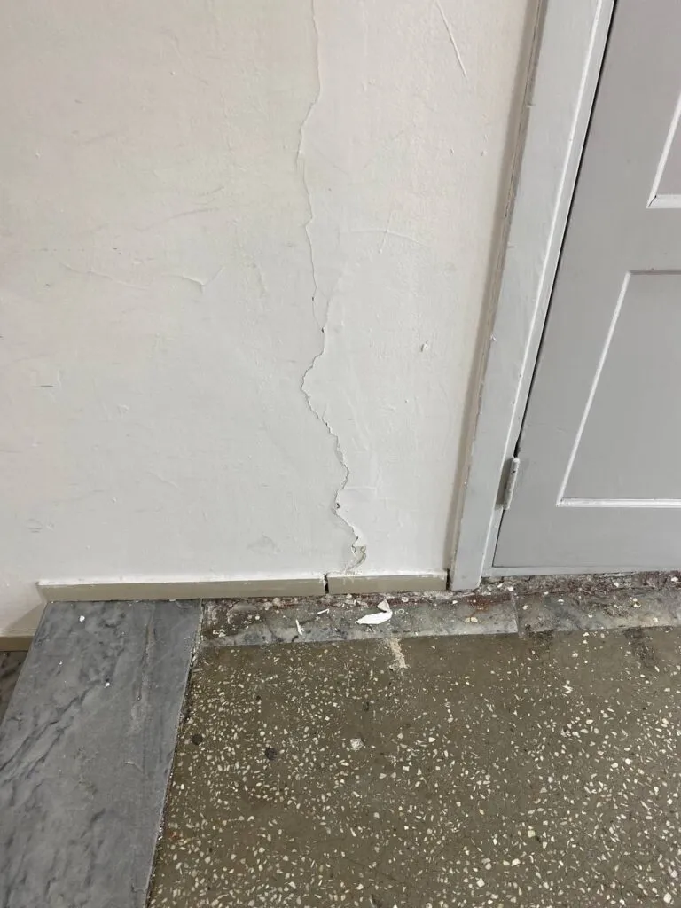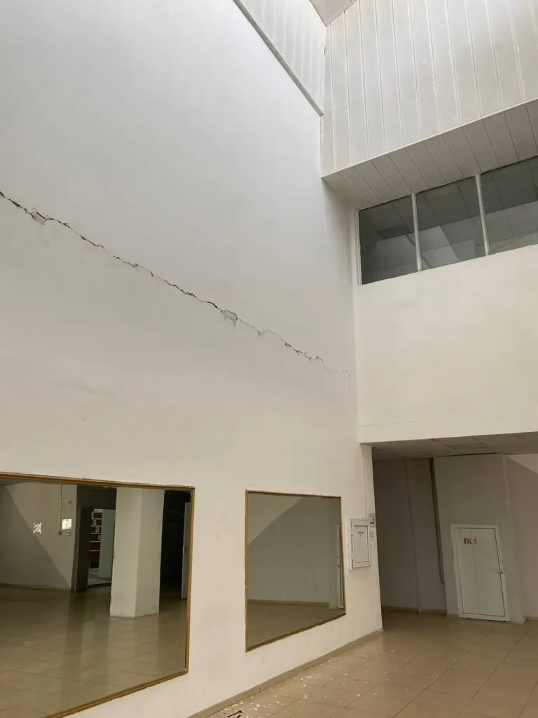 «Выбегая мы заметили трещины на стенах в фойе и куски штукатурки», — рассказали учащиеся.