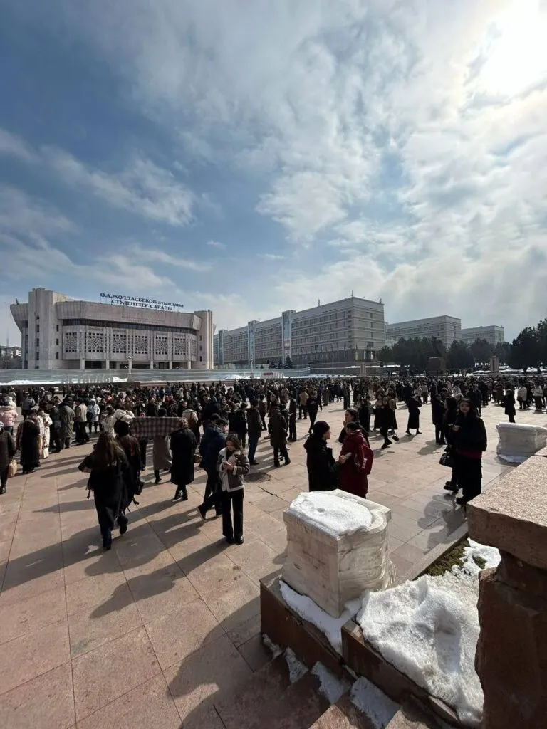 «Сирену было слышно очень сильно, из-за этого было очень страшно. В первые минуты мы стояли в шоке от испуга, один парень крикнул, чтобы мы не стояли, собрали вещи и уходили. Тогда мы быстро спустились со второго этажа и встали на главной площади перед ректоратом», — рассказала студентка Алимова Амира.