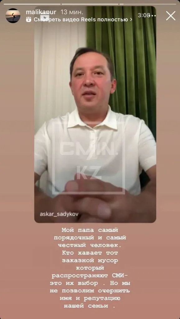 Одна из дочерей экс-депутата, Данеля Садыкова, казахстанская певица под псевдонимом Dequine, пока воздерживается от комментариев по поводу происходящего.