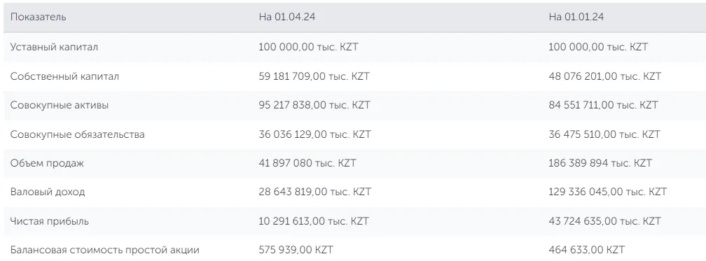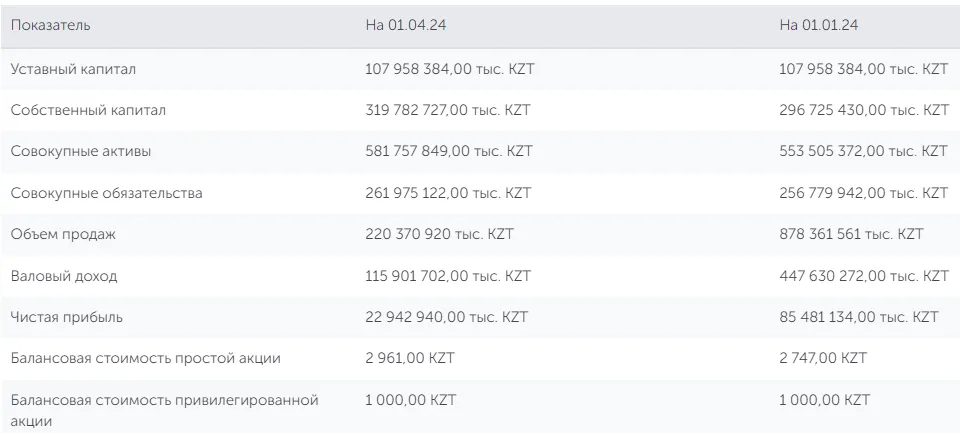 Отметим, что чистая прибыль "внучки" нацкомпании на 1 января 2024 год составила 85 млрд тенге. Балансовая стоимость простой акции за четыре месяца этого года выросла до 2 961 тенге.