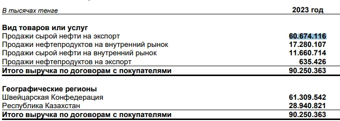 В прошлом году АО "КоЖаН" поставил на внутренний рынок 125 000 тонн сырой нефти. Это 32% от общего объёма реализованного товара. Остальную часть экспортировали в Швейцарской Конфедерации. В том числе новым покупателем стала компания VITOL ENERGY TRADING SA. С ней контракт заключили в 2023 году. Всего АО "КоЖаН" выручил от продажи сырой нефти за рубеж 60,6 млрд тенге.
