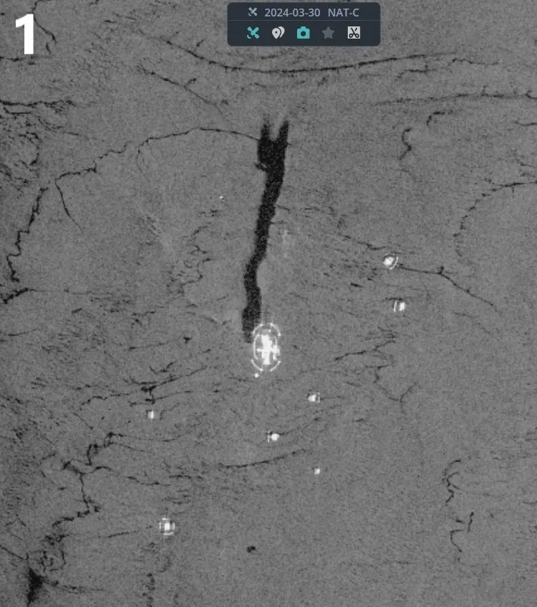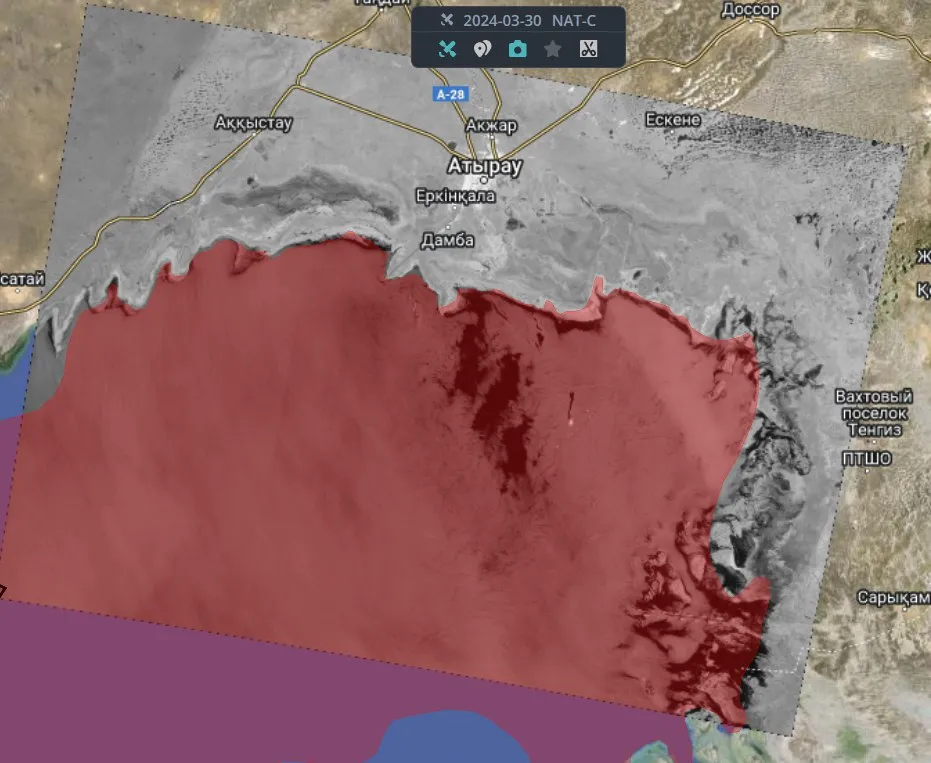 «По данным группы, осуществляющей данный космический мониторинг, на радиолокационном изображении европейского спутника Sentinel-1A от 30.04 (02:43 UTC) отобразился разлив у казахстанского месторождения и места добычи нефти «Кашаган».
