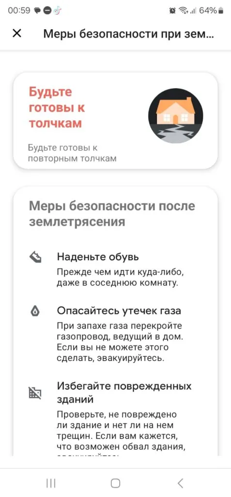 Уведомления о подземных толчках содержали информацию о том, что ожидается землетрясение. Пользователям дали также рекомендации, как обезопасить себя и где укрыться.