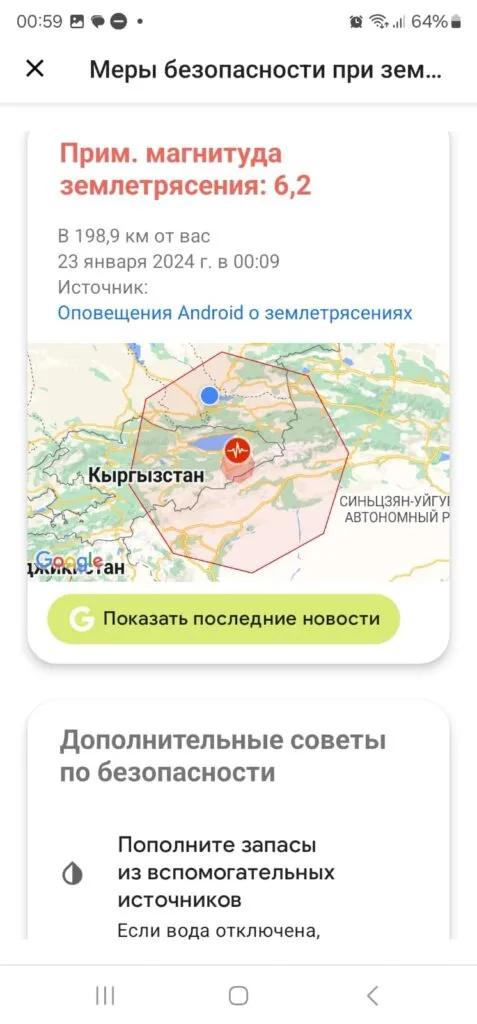 Пользователи смартфонов с операционной системой Android получили оповещение о мощном землетрясении за минуты до подземных толчков