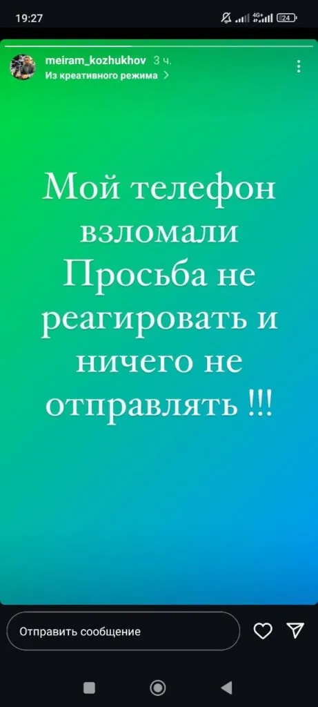 Мейрам Кожухов в своем Инстаграме сообщил, что его телефон взломали.
