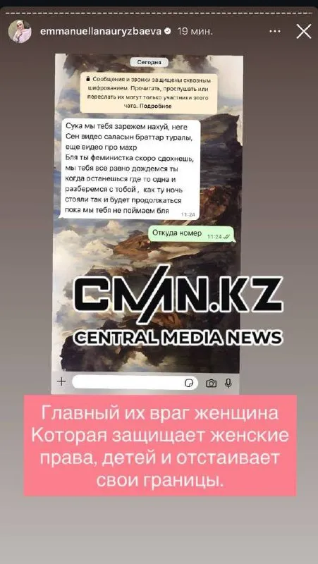 Кроме того, неизвестные смогли раздобыть номер создательницы контента и стали присылать ей сообщения с угрозами: "Мы тебя зарежем", "Ты феминистка скоро сдохнешь", "Мы тебя найдём и уберём" и другие.