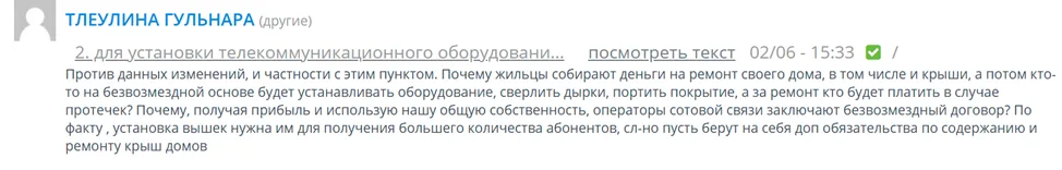 Поэтому и ввели, так называемую, «Рабочую группу», куда вошли эксперты и представители отраслевых ассоциаций, операторов связи, заинтересованных государственных органов. Она, в свою очередь, предложила разместить телекоммуникационное оборудование на домах «на безвозмездной основе».
