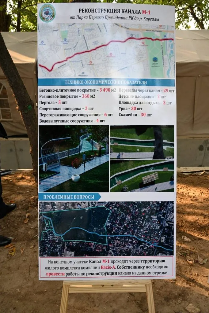 Первый объект – канал М-1 (3,8 км) от Парка Первого президента до реки Каргалы. Здесь укрепляют берега, меняют гидросооружения, благоустраивают территорию.