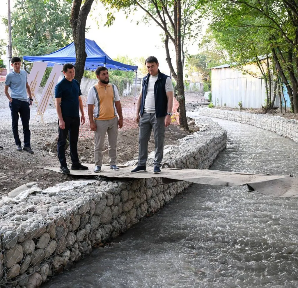 В Наурызбайском районе идут работы по укреплению русла реки Сапожникова (1,8 км), а также озеленение и освещение территории и монтаж спортплощадки.