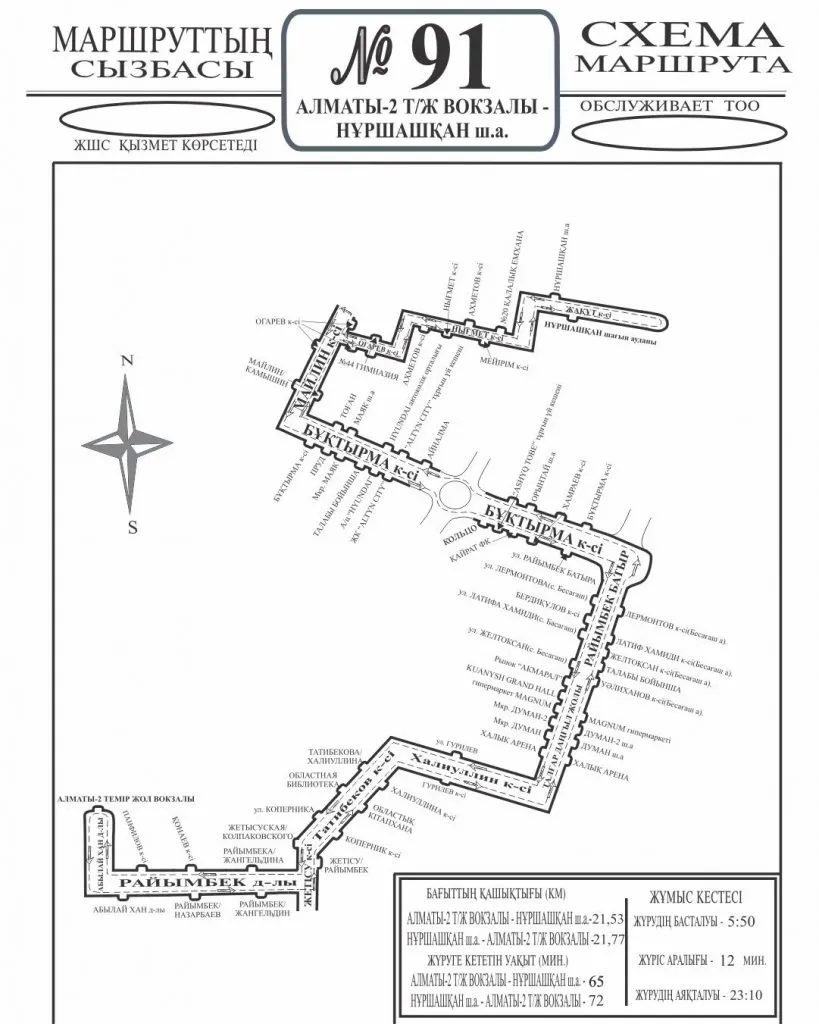 Маршрут №91 будет курсировать от микрорайона Нуршашкан до железнодорожного вокзала «Алматы-2». Его запустят с 13 декабря, передаёт CMN.KZ