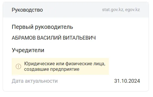 По информации из открытых источников компания была зарегистрирована в 2011 году и находится в Алматы. А её учредителем и первым руководителем является Василий Абрамов.