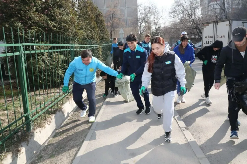 К примеру, бронзовый призёр по дзюдо Гусман Кыргызбаев помогал очистить территорию вокруг своей школы.