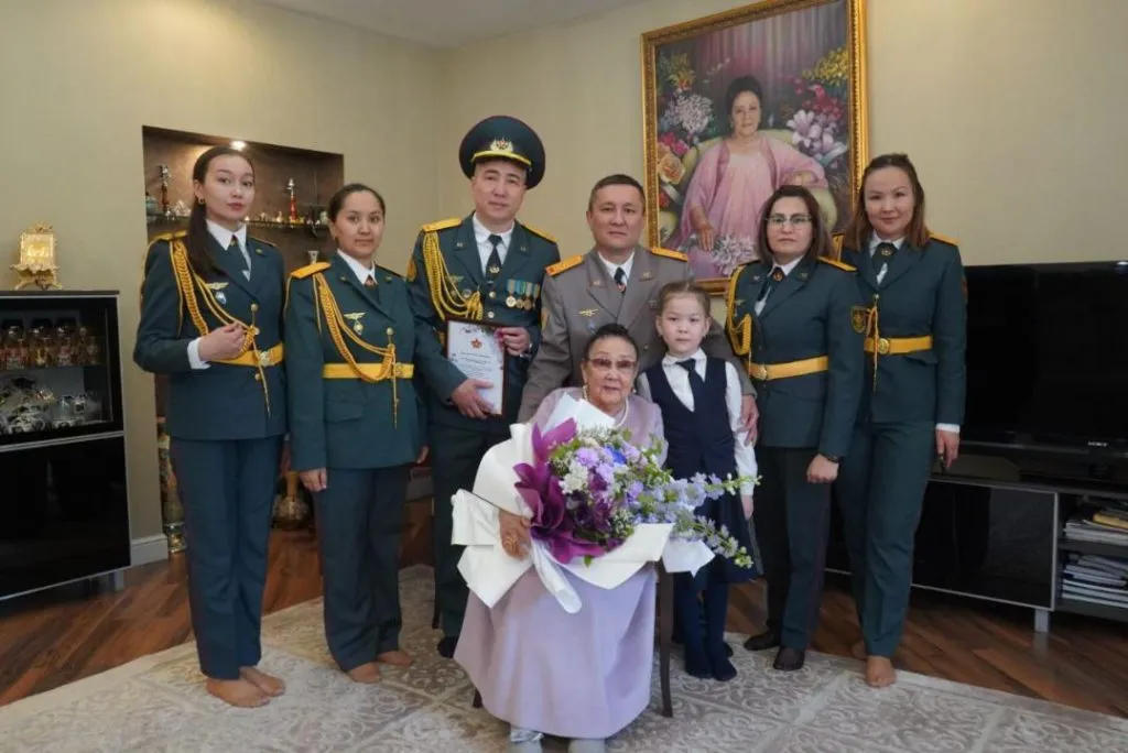 Бибигуль Ахметовна поблагодарила за внимание к ней и поздравила военных и остальных казахстанцев с Днём защитника Отечества и Днём Победы.