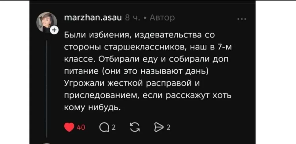 Корреспондент CMN.KZ обратилась к руководству школы, чтобы узнать подробности. Директор интернета Аслбек Альдименов подтвердил, что мать действительно обратилась к ним с жалобой.