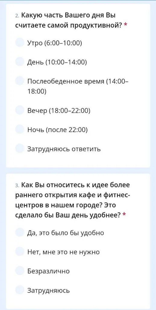 Чтобы найти список вопросов, нужно зайти в раздел "Уведомления", затем в "Опросы/анкеты" где расположен опрос "Хронометрика: исследование распределения времени".