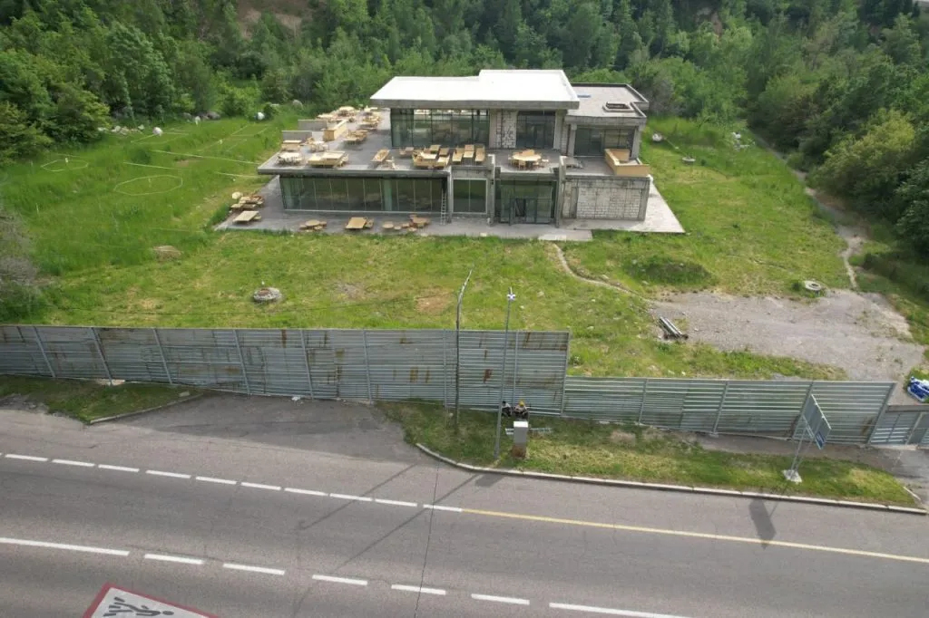 На том же участке есть еще один недостроенный объект. Он вошел в число долгостроев Алматы.