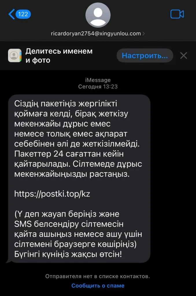 «Да, к сожалению, казахстанцы получают сообщения от мошенников. Их отправляют с рандомных адресов. Зачастую это почтовые адреса (mail, gmail, outlook, link и тд)».