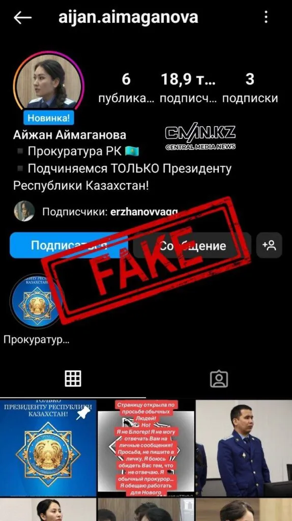 «Аккаунт "aijan.aimaganova" в Instagram не имеет никакого отношения к Аймагановой, как и другие вновь созданные страницы в разных социальных сетях», — пояснили в Генпрокуратуре и попросили доверять только проверенной информации.