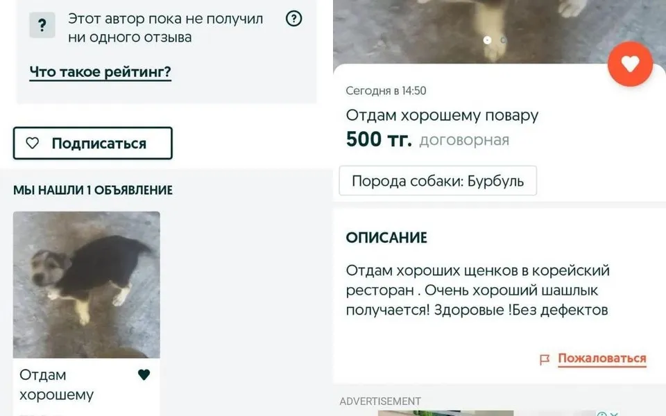 Казахстанские пользователи Facebook возмутились объявлению о продаже щенков в корейский ресторан. Автор объявления утверждает, что из животных получается вкусный шашлык, сообщает CMN.kz.