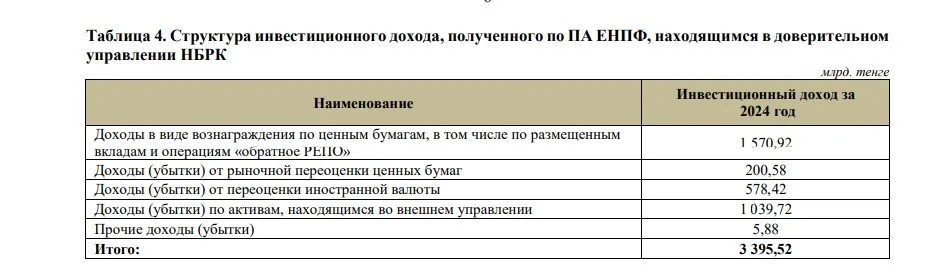 В ЕНПФ также добавили, что итоги инвестиций нужно смотреть на длинной дистанции. Например, за 2024 год фонд принёс вкладчикам доход в 3,4 трлн тенге.