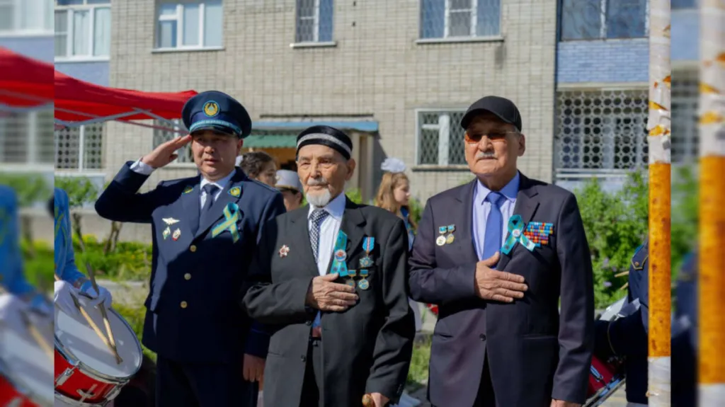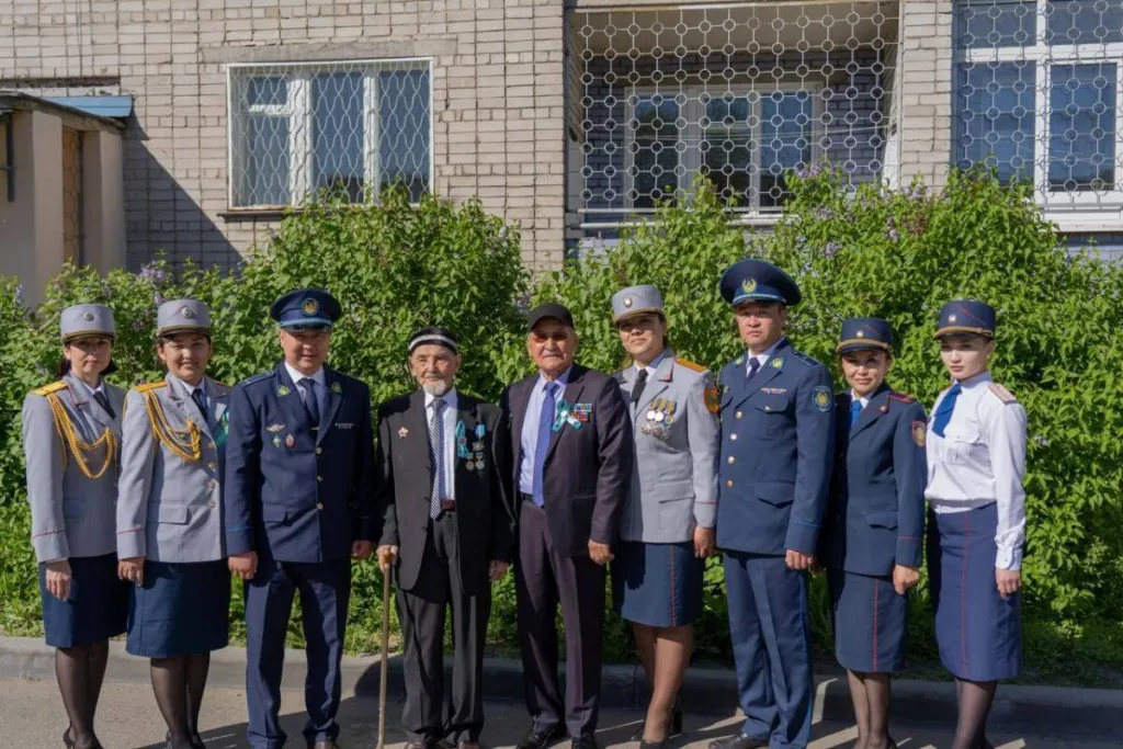 Ветерана Великой Отечественной войны и органов внутренних дел 99-летнего Курмата Рахимова необычно поздравили стражи порядка. Во дворе у аксакала полицейские и кадеты провели полноценный парад. Попурри песен военных лет прозвучали прямо у дома, где живёт фронтовик. Хор департамента полиции ВКО исполнил «Катюшу», «Журавли» и «День победы».