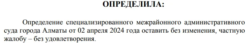 2 апреля 2024 года Специализированный межрайонный административный суд Алматы