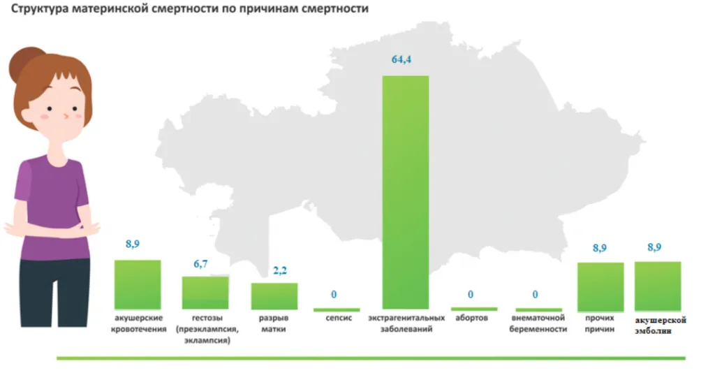 Высокую смертность матерей зафиксировали в Акмолинском, Жамбылском, Актюбинском и Костанайском регионах, а также в областях Жетысу и Абай.