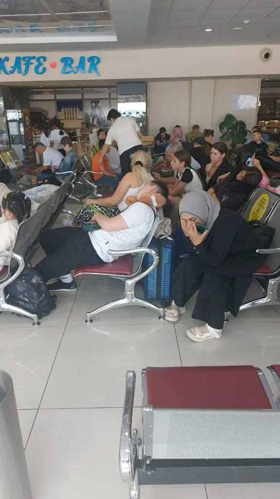 «В 7 часов вечера 3 июля нам написали, что рейс опять переносится, теперь на 12 часов ночи. Людям из других городов предложили только 20 мест в комнате отдыха, хотя пассажиров было гораздо больше. Затем в половину одиннадцатого вечера нам сообщили, что рейс опять переносится, ещё на два часа. Было очень жарко. Нам не давали ни воды, ни еды. Не объясняли, почему постоянно откладывается рейс. Сначала говорили, что из Анталии рейс не может вылететь. Потом этот рейс прилетел. Затем сказали, что самолет сломался», — рассказывает Каракоз.