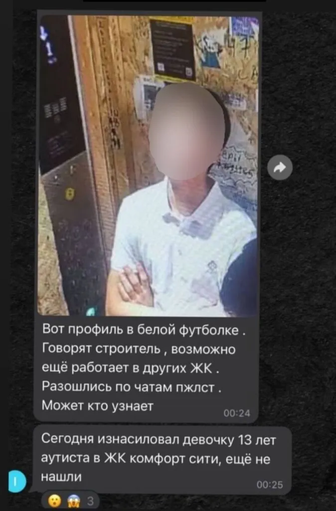 Местные жители рассказали корреспонденту CMN.kz, что задержанный мужчина занимался ремонтом в одной из квартир ЖК. Предположительно он гражданин Узбекистана, ему 23 года. Пострадавшая девочка — инвалид второй группы.
