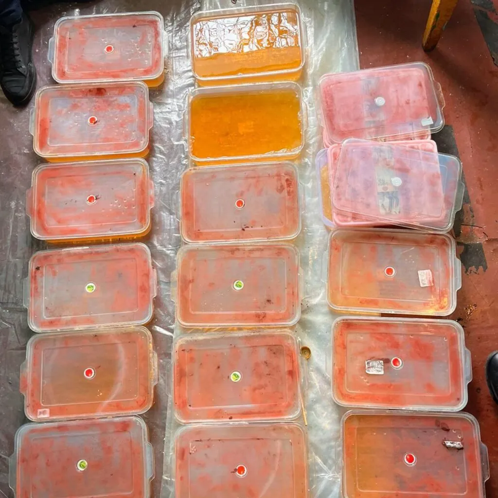 КНБ РК сообщает, что в ходе обысков дома изъято около 20 кг синтетических наркотиков, 1 тыс. литров прекурсоров и оборудование, предназначенные для изготовления «синтетики».