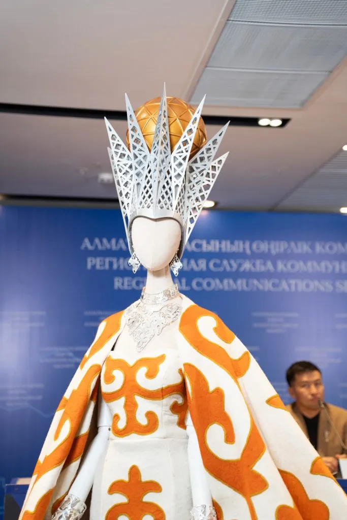 Дизайнером костюма выступил кыргызстанец Арзубек Вонама. Он вдохновился символом Казахстана — монументом «Байтерек». Костюм выполнен в золотистых тонах, что по мнению дизайнера символизирует богатство и щедрость, подчеркивает не только культурное наследие страны, но и смелое видение будущего.