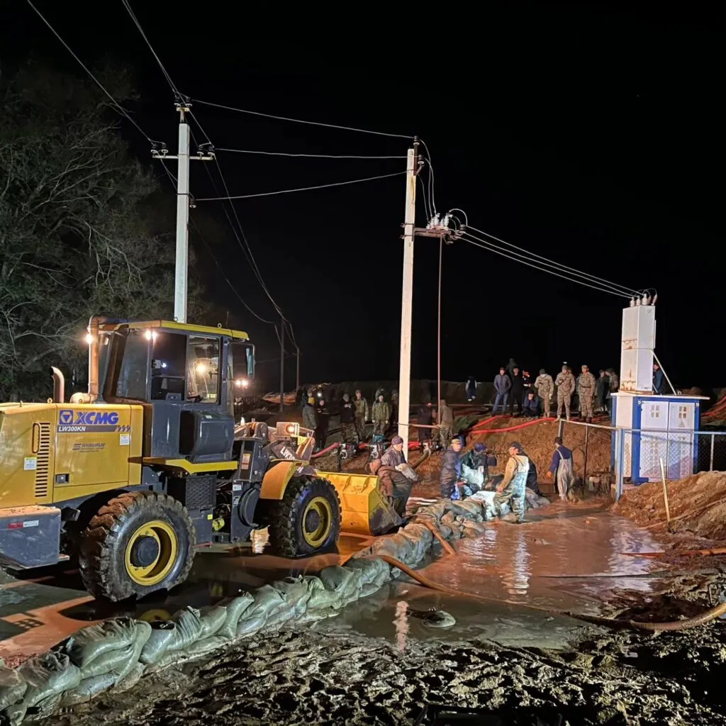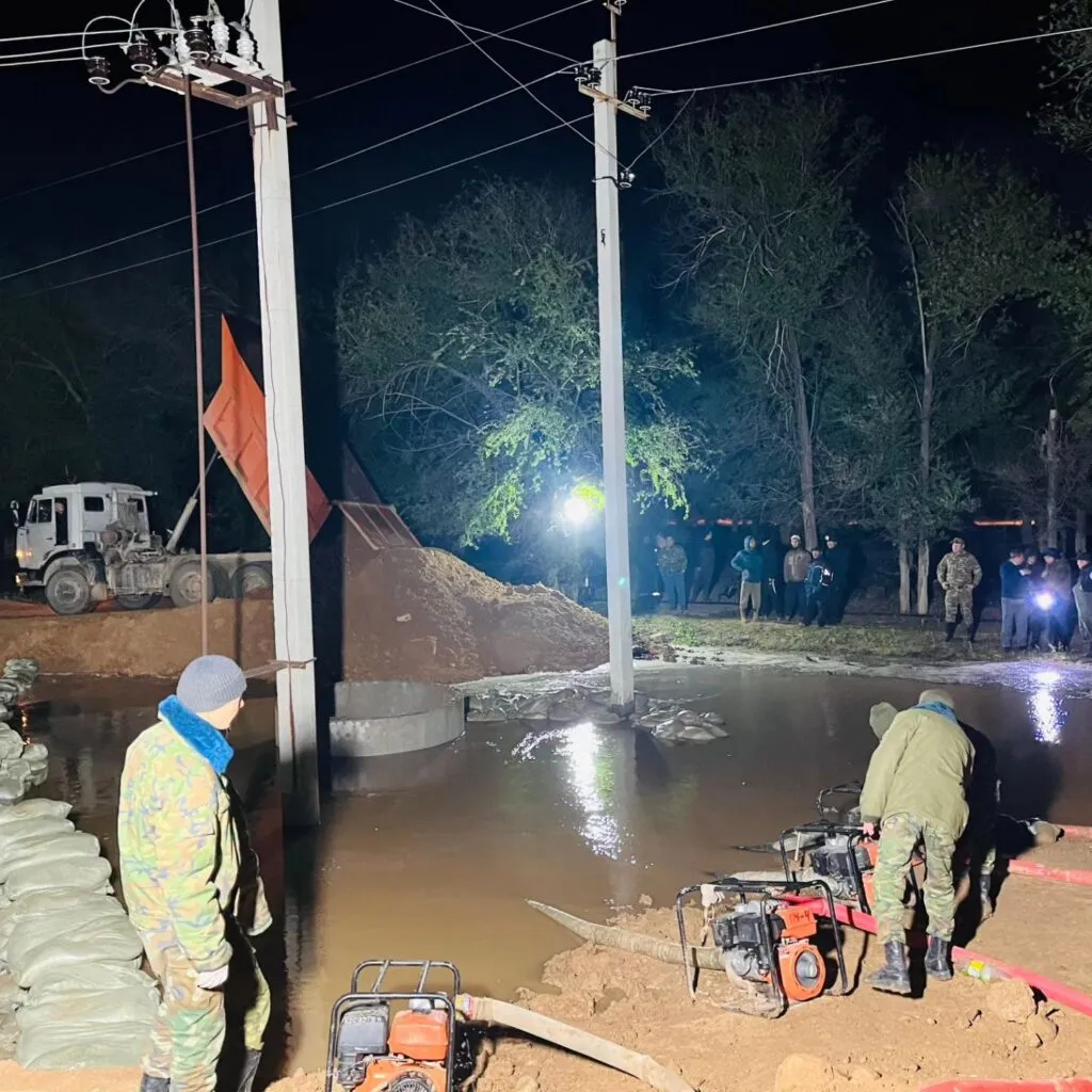 «В данный момент идут работы по откачке воды и параллельному возведению дамбы вокруг участка разлива задействовано 30 единиц техники, 20 водооткачивающих устройств и более 300 человек, это сотрудники, ДЧС, военнослужащие, местные жители. На данный момент уровень воды в реке Жайык в селе Индербор составляет 1036 см, при критическом — 845 см», — добавили в оперативном штабе.