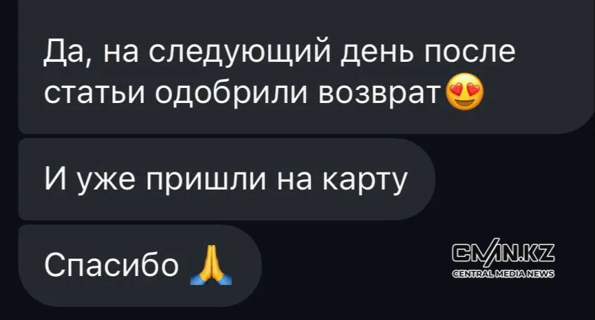 С корреспондентом CMN.KZ cвоими историями поделились Анастасия и Амина. На следующий день после публикации материала девушкам вернули деньги.