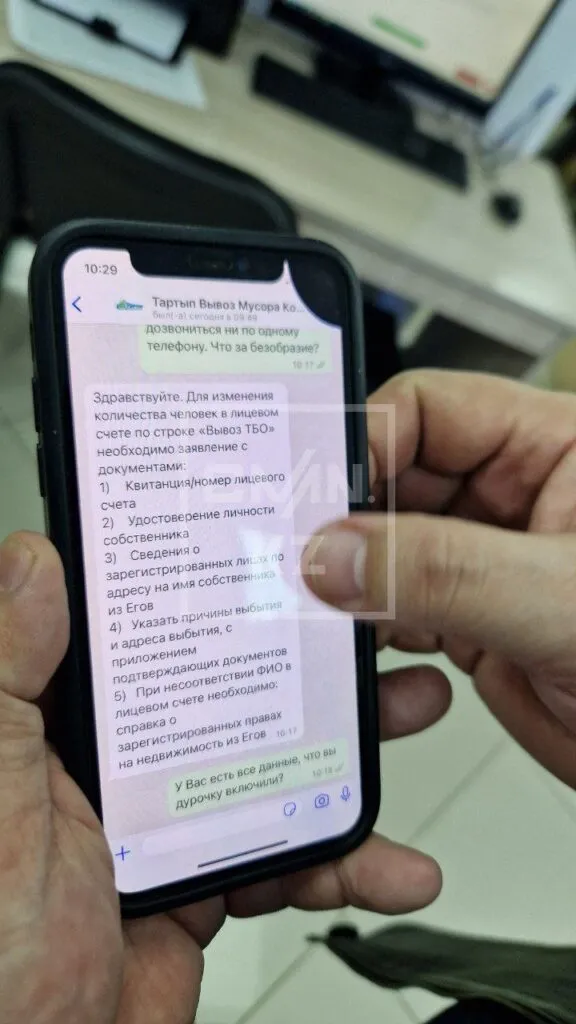 Представитель компании "АҚ Тәртіп", доминирующей на рынке по сбору и вывозу отходов, пояснил ситуацию. Если коротко, то в базе МЦАРИАП Багдата Мусина, а также в управлении цифровизации Алматы акима Ерболата Досаева допустили ошибки.