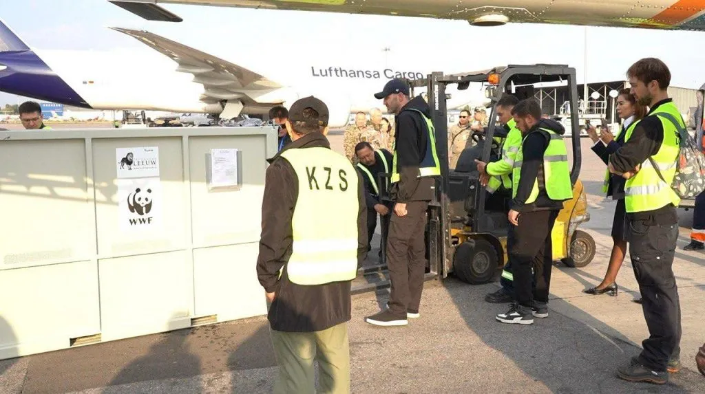 В эти выходные, в сопровождении постоянных смотрителей, тигров доставили в новый дом на грузовом самолёте и вертолёте в специальных транспортных контейнерах. Сейчас животные проходят акклиматизацию в малом вольере, расположенном на границе заповедной зоны резервата «Иле-Балхаш». Через несколько недель их выпустят в более просторные помещения.